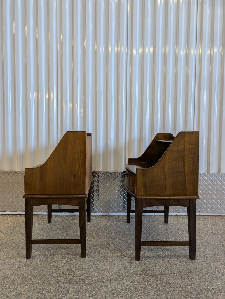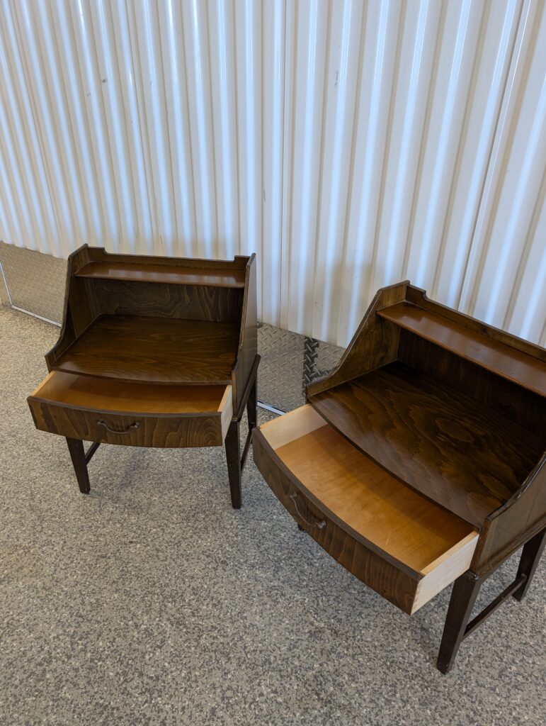 I love this pair of Mid Century Modern nightstands! It’s rare to find a piece designed in this style, with tall legs that add an airiness to what may otherwise be a busy area.